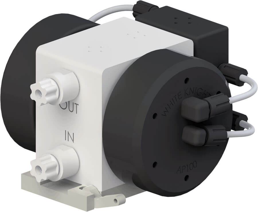 AP40EXT3 pumps are completely metal-free with PTFE and PFA fluid paths. These high-purity pumps distribute chemicals at temperatures up to 100°C (212°F), offer air supply pressures up to 4 Bar (60 psi), and are capable of up to 14 lpm flow rates.